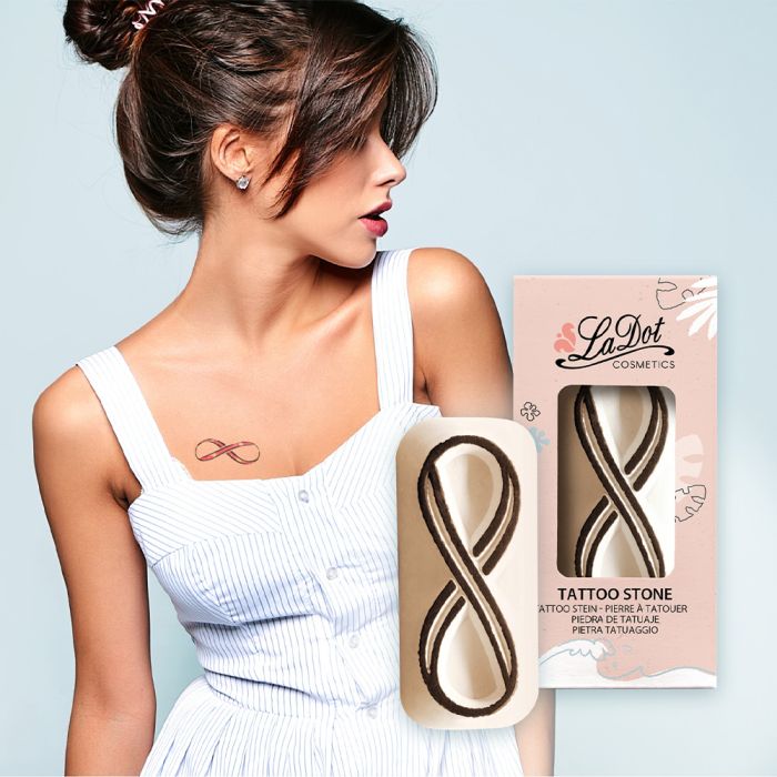 Der LaDot Stein mit dem endlosen Infinity-Aufdruck ist ein mittelgroßes Motiv von 5 x 2,5 cm, das aus Keramik hergestellt wird. Seine handgefertigte, sanft gerundete Form sorgt für makellose Abdrücke. Das Motiv, das die Ewigkeit symbolisiert, sorgt für einen Hauch von zeitlosem Charme. Die Vielseitigkeit steht im Mittelpunkt, denn die Motive lassen sich mühelos miteinander kombinieren und verleihen dem Geschenk eine persönliche Note. Ideal für verschiedene Anlässe - sei es ein Tag am Strand, ein Urlaub, das nächste Festival oder eine Party am Wochenende. Mit den LaDot Steinen kann man sich nach Lust und Laune ein neues Tattoo aussuchen, das sich der jeweiligen Stimmung und dem Anlass anpasst. Diese temporären Tattoos sind nicht nur hautverträglich, sondern auch hypoallergen, so dass sie sowohl für Erwachsene als auch für Kinder geeignet sind. Zertifiziert und vegan, sind sie ein trendiges Accessoire.