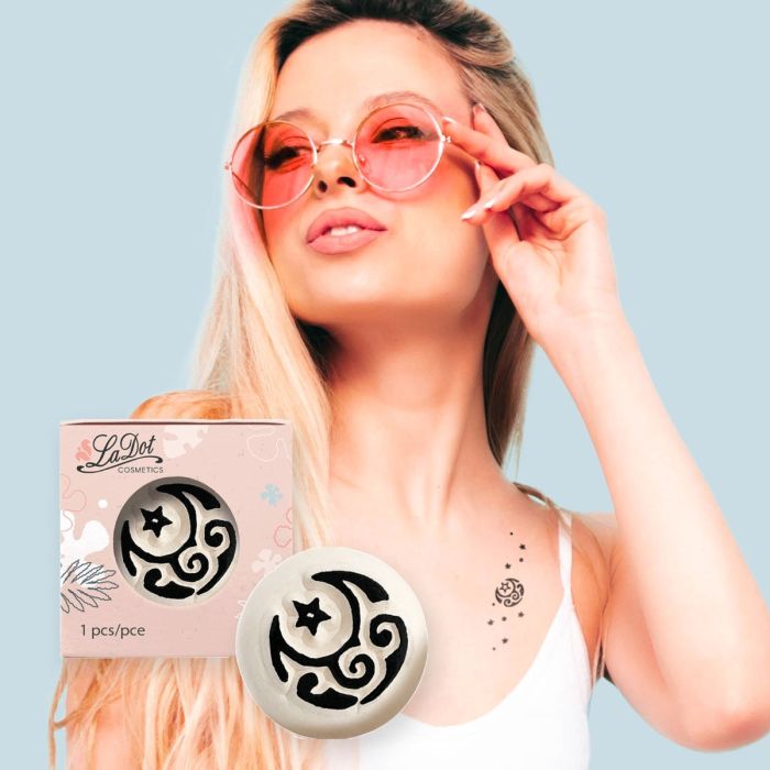 Unser LaDot Stein mit Mond-Design. Entfesseln Sie Ihre Kreativität mit unserem LaDot Stein, der ein faszinierendes Mondabdruckmotiv präsentiert. Jeder Stein misst 1,5 x 1,5 cm und wird aus hochwertiger Keramik hergestellt. Die leicht abgerundete Form gewährleistet makellose Abdrücke bei jeder Anwendung. Vielseitigkeit steht im Mittelpunkt unserer LaDot Range– kombinieren Sie mühelos verschiedene Motive. Egal, ob Sie am Strand sind, im Urlaub, das nächste Festival besuchen oder sich auf eine Wochenendparty vorbereiten – unsere Steine bieten eine dynamische Möglichkeit, Ihre Individualität zu zeigen. Wählen Sie je nach Stimmung und Anlass ein neues Tattoo, denn die Möglichkeiten sind endlos. Unsere temporären Tattoos sind nicht nur modisch; sie sind auch hautfreundlich und hypoallergen und eignen sich daher sowohl für Erwachsene als auch für Kinder. Zertifiziert und vegan werden die LaDot Steine in den Niederlanden hergestellt.