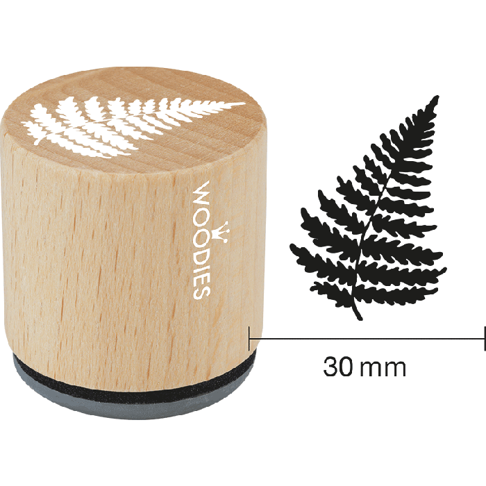 Entdecken Sie unsere praktischen Woodies Stempels in unterschiedlichen Themenbereichen - unser Farnblatt-Motiv. Dieser hochwertige Holzstempel setzt einen floralen Akzent in all Ihren kreativen Projekten. Der runde Stempel begeistert mit einer großzügigen 30 mm Abdruckgröße, die jedes Detail des filigranen Motivs perfekt zur Geltung bringt. Hergestellt aus Buchenholz steht unser Stempel für umweltbewusste Qualität. Die Oberfläche ist mit einem UV-beständigen, seidenmatten Wasserlack lackiert, der nicht nur für eine ansprechende Optik, sondern auch für Langlebigkeit sorgt. Das 2 mm dicke Gummi gewährleisten optimale Abdruckergebnisse. Mit stolzer europäischer Produktion setzen wir auf höchste Standards in Bezug auf Qualität und Präzision. Die vielseitige Anwendbarkeit des Woodies Stempels erstreckt sich von Einladungen über kleine Anhänger oder Etiketten bis hin zu Dekorationen und Layouts für Kartengestaltungen. Bringen Sie mit dem Woodies Stempel Farnblatt eine natürliche Eleganz in Ihre Projekte.