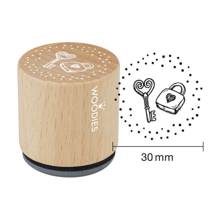 Unsere Woodies Stempel mit dem bezaubernden Motiv von Schloss und Schlüssel im Herzdesign. Unser runder Holzstempel mit einer großzügigen 30 mm Abdruckgröße ist die ideale Ergänzung für all Ihre kreativen Projekte. Das Buchenholz, liebevoll lackiert mit UV-beständigem, seidenmattem Wasserlack, verleiht dem Stempel nicht nur eine ansprechende Optik, sondern verspricht auch Langlebigkeit und Umweltfreundlichkeit. Die 2 mm dicke Schicht aus hochwertigem grauem Gummi sorgt für optimale Abdruckergebnisse, die jedes Detail des Schloss-und-Schlüssel-Motivs perfekt wiedergeben. Unser Woodies Stempel wird in Europa produziert und überzeugt durch höchste Qualität. Vielseitig einsetzbar eignet er sich perfekt für Einladungen, kleine Anhänger oder Etiketten, Dekorationen und Layouts für Kartengestaltungen. Entdecken Sie die Welt der Woodies Stempel und kombinieren Sie zudem unsere Motive mit den eigens dafür entwicklten Woodies Stempelkissen in einer Vielzahl an unterschiedlichen Farben.
